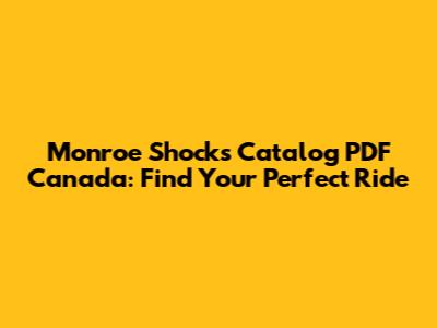 Monroe Shocks Catalog PDF Canada: Find Your Perfect Ride