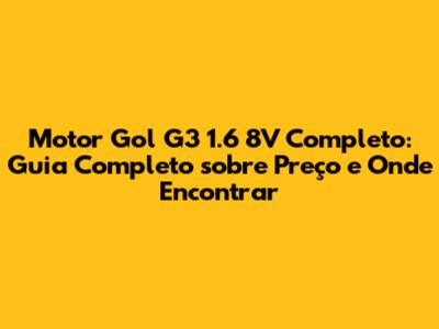 Motor Gol G3 1.6 8V completo preço: O motor 1.6 8V do Gol G3 é uma excelente opção para quem busca um motor confiável e com bom desempenho. Ao entender suas características, o preço, e onde comprar, você estará pronto para fazer a melhor escolha. Lembre-se de sempre realizar a manutenção preventiva para garantir a durabilidade do seu motor e evitar dores de cabeça. Com as dicas deste guia, você estará bem equipado para encontrar o motor ideal para seu carro e mantê-lo funcionando perfeitamente por muitos anos. Se você está pensando em substituir o motor do seu carro, ou apenas quer saber mais sobre essa opção, este artigo te deu todas as informações necessárias para tomar a melhor decisão. Boa sorte na sua busca e aproveite o desempenho do seu Gol G3!