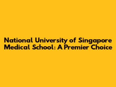 National University Of Singapore Medical School: A Premier Choice
