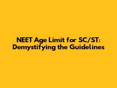 • Q: Is there an upper age limit for NEET for SC/ST candidates? *A: Yes, there is an upper age limit, but it's typically more lenient for SC/ST candidates compared to the general category. The exact age is stated in the official notification. This can change, so always check!