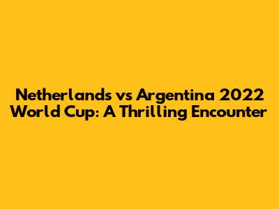Netherlands Vs Argentina 2022 World Cup: A Thrilling Encounter