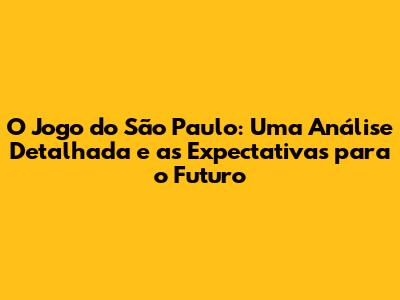 O Jogo Do São Paulo: Análise E Expectativas