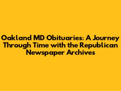 Oakland MD Obituaries: A Look Through The Republican Newspaper Archives