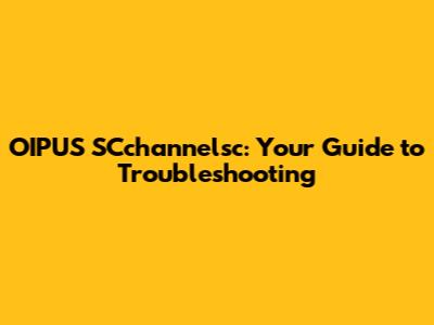 OIPUS SCchannelsc: Your Guide To Troubleshooting