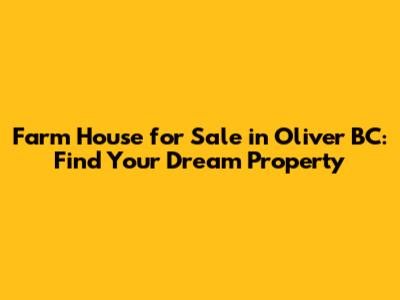 Oliver BC Farmhouses For Sale: Find Your Dream Property