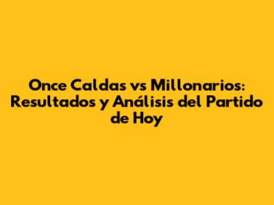 Once Caldas Vs Millonarios: Resultados Y Análisis Del Partido