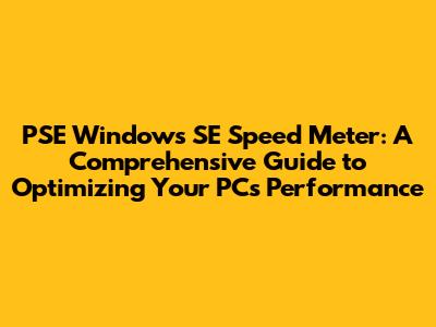 Optimize PC Speed: PSE Windows SE Speed Meter Guide