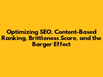 Optimize SEO, Content-Based Ranking, Brittleness & Barger Effect