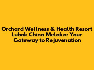 Hey there, wellness enthusiasts! If you're searching for a place to escape the daily grind and embark on a journey of self-discovery and rejuvenation, then look no further than the Orchard Wellness & Health Resort in Lubok China, Melaka. This isn't just a vacation; it's an immersive experience designed to revitalize your mind, body, and spirit. Let's dive in, shall we?
