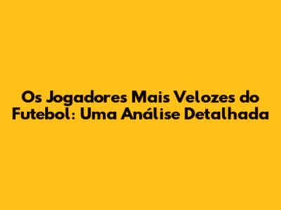 Os Jogadores Mais Velozes Do Futebol: Uma Análise Detalhada