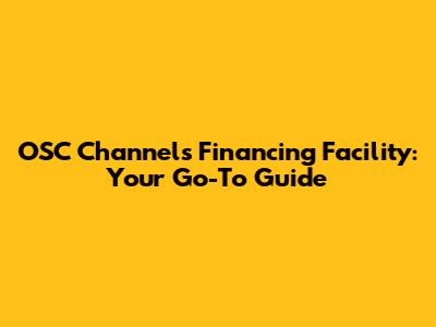 Hey guys! Ever wondered how businesses manage to keep their operations smooth and growing? Well, a big part of it often comes down to having access to reliable financing. Today, we’re diving deep into one such avenue: the OSC Channels Financing Facility. Think of it as a financial tool designed to help businesses like yours thrive. This comprehensive guide will walk you through everything you need to know, from the basics to the nitty-gritty details. Let's get started!