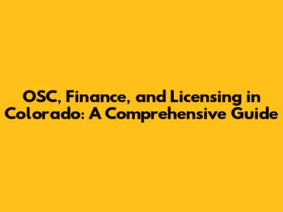 OSC, Finance, And Licensing In Colorado: A Comprehensive Guide