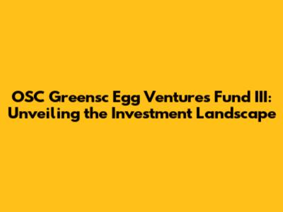 OSC Greensc Egg Ventures Fund III: A Deep Dive
