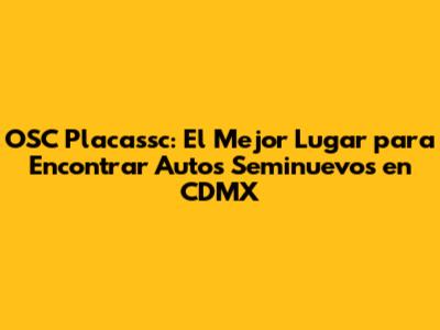 ¿Estás en la búsqueda de un auto seminuevo en la Ciudad de México (CDMX)? ¡Felicidades, llegaste al lugar indicado! OSC Placassc se ha posicionado como un referente en el mercado automotriz, ofreciendo una amplia gama de vehículos seminuevos de alta calidad, precios competitivos y un servicio al cliente excepcional. En este artículo, te guiaremos a través de todo lo que necesitas saber sobre OSC Placassc, desde su oferta de vehículos hasta los beneficios de comprar un auto seminuevo y cómo puedes encontrar el auto perfecto para ti.