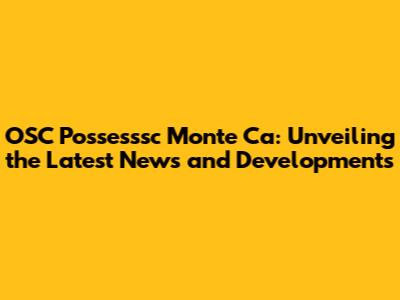 OSC Possesssc Monte Ca: Latest Updates & Insights