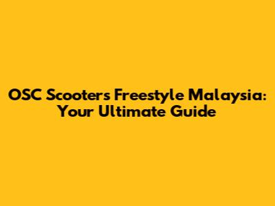 OSC Scooters Freestyle Malaysia: Tricks, Tips, And Repair Guide