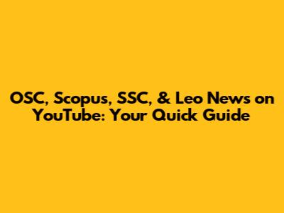OSC, Scopus, SSC, & Leo News On YouTube: Your Quick Guide