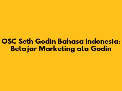 OSC Seth Godin Bahasa Indonesia adalah artikel yang akan membahas tentang konsep pemasaran yang diajarkan oleh Seth Godin, seorang penulis dan pemasar ternama. Bagi kalian yang tertarik dengan dunia marketing dan ingin memahami strategi pemasaran yang efektif, artikel ini sangat cocok untuk kalian. Kita akan menyelami ide-ide kunci dari Godin, menerjemahkannya ke dalam bahasa Indonesia, dan melihat bagaimana kita dapat menerapkannya dalam konteks lokal. Yuk, simak ulasan lengkapnya!