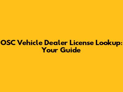 OSC Vehicle Dealer License Lookup: Your Guide