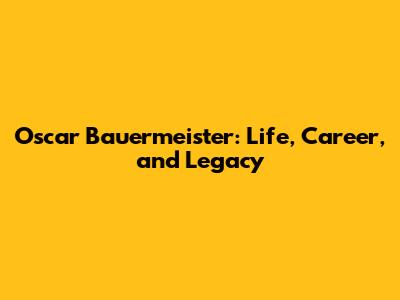 Oscar Bauermeister: Life, Career, And Legacy