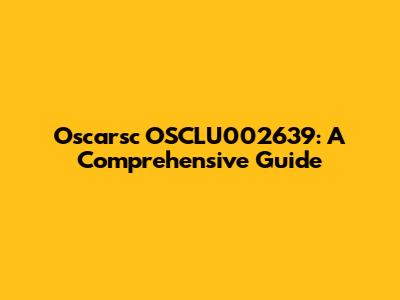 Oscarsc OSCLU002639: A Comprehensive Guide