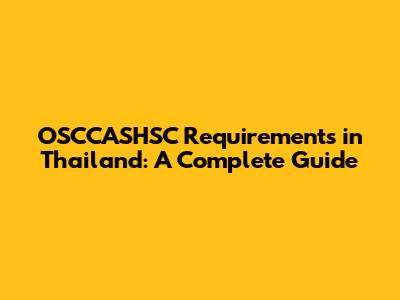 OSCCASHSC Requirements In Thailand: A Complete Guide