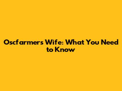Oscfarmer's Wife: What You Need To Know