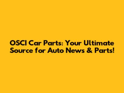 OSCI Car Parts: Your Go-To For Auto News & Parts!