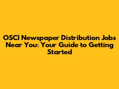 OSCI Newspaper Distribution Jobs Near You