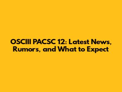 OSCIII PACSC 12: Latest News, Rumors, And What To Expect