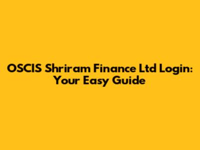 OSCIS Shriram Finance Login: Your Easy Guide