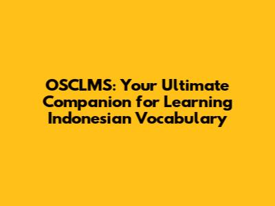 OSCLMS: Your Guide To Mastering Indonesian Vocabulary