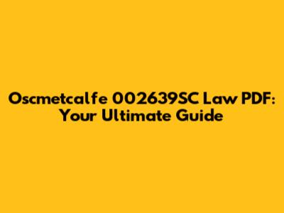 Why is the Oscmetcalfe 002639SC Law PDF So Important?