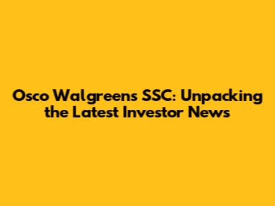 Hey guys! Let's dive into some juicy updates regarding Osco Walgreens SSC investor news. If you're someone who keeps a close eye on the stock market, or maybe you're invested in Osco Walgreens SSC yourself, then this is for you. We're going to break down what's been happening, what it means for investors, and what we might expect moving forward. Keeping up with investor news can feel like a full-time job sometimes, right? But understanding these developments is key to making smart decisions with your hard-earned cash. So, grab a coffee, settle in, and let's get this information session started.