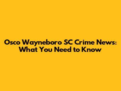 Osco Wayneboro SC Crime News: What You Need To Know