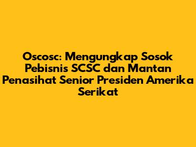 Oscosc, sebuah nama yang mungkin belum familiar di telinga banyak orang, namun menyimpan cerita menarik tentang seorang pebisnis yang juga memiliki pengalaman sebagai mantan Penasihat Senior Presiden Amerika Serikat. Dalam artikel ini, kita akan menyelami lebih dalam sosok Oscosc, menelusuri jejak karirnya di dunia bisnis, khususnya terkait dengan SCSC (Singapore Cooperation for Sustainable Cities), serta perannya dalam pemerintahan Amerika Serikat. Mari kita mulai petualangan untuk mengenal lebih jauh sosok yang menarik ini!
