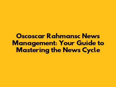 Oscoscar Rahmansc News Management: Your Guide To Mastering The News Cycle