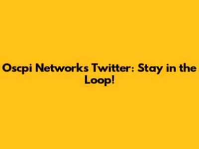 Oscpi Networks Twitter: Updates & News