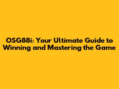 OSG88i: Your Ultimate Guide To Winning And Mastering The Game