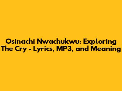 Hey music lovers! Today, we're diving deep into the soul-stirring world of Osinachi Nwachukwu's 'The Cry.' This isn't just a song; it's an experience. We're going to break down the lyrics, find out where you can get the MP3 download, and explore the profound meaning behind this powerful gospel track. So, grab your headphones, and let's get started!