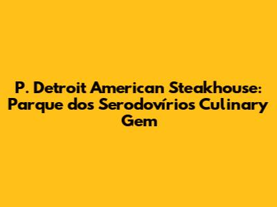 Hey guys! Let's dive into the amazing P. Detroit American Steakhouse, a real standout in Parque dos Serodovírios. If you're hunting for a top-notch steakhouse that brings together classic American flavors with a touch of local charm, you've totally hit the jackpot. This place isn't just about slapping some meat on a grill; it’s a full-blown experience that’ll keep you coming back for more. From the moment you walk in, you're greeted with a vibe that's both sophisticated and super welcoming, making it perfect for everything from a chill dinner with your family to a crucial business lunch.