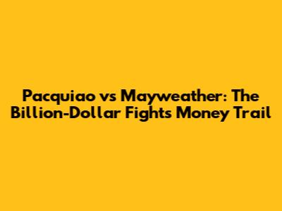 Pacquiao Vs Mayweather: The Billion-Dollar Fight's Money Trail