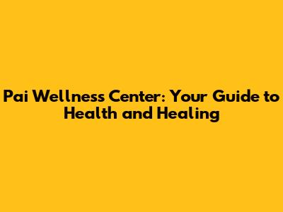 Pai Wellness Center: Your Guide To Health And Healing