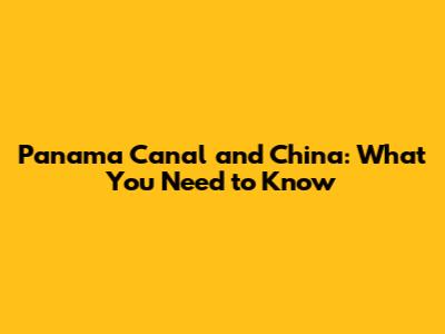 Panama Canal And China: What You Need To Know
