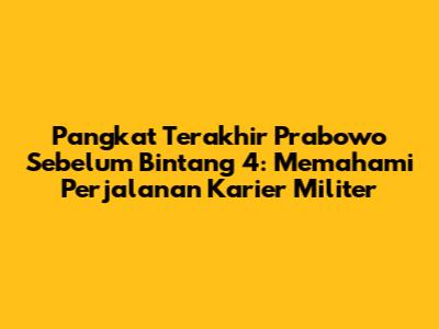 Sebelum akhirnya menyandang bintang empat, Prabowo Subianto memiliki pangkat terakhir yang menjadi pencapaian penting dalam karier militernya. Pangkat ini menandai posisi strategis yang diembannya, serta tanggung jawab besar yang diemban. Untuk mencapai posisi ini, Prabowo telah melewati berbagai tahapan, mulai dari pendidikan, penugasan, hingga menunjukkan kinerja yang luar biasa.