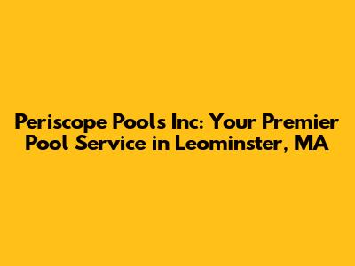 Hey pool owners in Leominster, MA! Are you dreaming of a sparkling, inviting oasis in your backyard? Look no further than Periscope Pools Inc, your local experts in all things pool-related! We're not just about building pools; we're about creating experiences, memories, and a whole lot of fun right in your own backyard. Whether you're looking for a brand-new pool, need some repairs, or simply want to keep your existing pool in tip-top shape, we've got you covered. In this article, we'll dive deep into what makes Periscope Pools Inc the go-to choice for pool owners in Leominster and the surrounding areas. We'll explore our services, our commitment to quality, and why we stand out from the crowd. So, grab your favorite floatie, and let's get started!