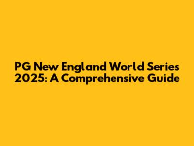 PG New England World Series 2025: Everything You Need To Know