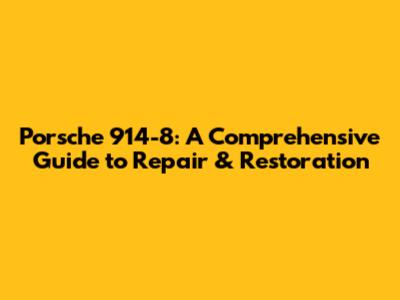 Porsche 914-8: A Comprehensive Guide To Repair & Restoration