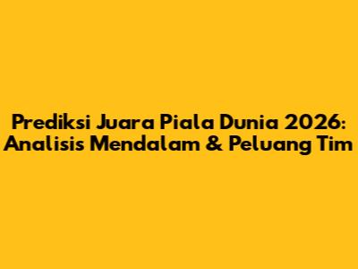 Prediksi Juara Piala Dunia 2026 – Guys, Piala Dunia selalu menjadi ajang yang dinanti-nantikan oleh para penggemar sepak bola di seluruh dunia. Pertandingan yang penuh dengan drama, kejutan, dan tentunya, harapan untuk melihat tim favorit kita mengangkat trofi paling bergengsi di dunia sepak bola. Nah, kali ini, kita akan membahas prediksi juara Piala Dunia 2026. Kita akan mengulas tim-tim unggulan, menganalisis kekuatan dan kelemahan mereka, serta melihat peluang mereka untuk melaju jauh di turnamen yang akan datang. Persaingan di Piala Dunia selalu ketat, dan setiap tim memiliki peluang untuk meraih kemenangan. Jadi, mari kita selami lebih dalam dan lihat siapa yang berpotensi menjadi juara pada tahun 2026!