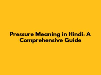 Pressure Meaning In Hindi: A Comprehensive Guide